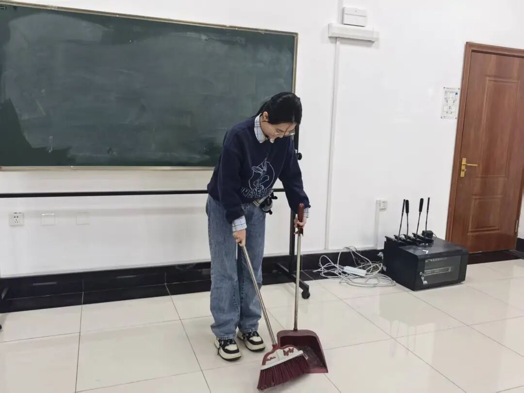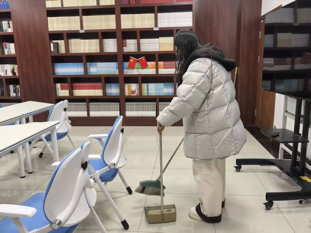 在2024级青马学员班生活委员王丹琪的安排下,学员们按小组分工协作,配合默契。负责清洁的学员对地面进行细致打扫,不放过任何一处卫生死角。负责环境美化的学员精心检查绿植,清除枯萎叶片及杂物。一小时后,学院公共区域环境焕然一新。学员们纷纷表示:“通过本次义务劳动,学院环境变得更加整洁有序,不仅增强自己的劳动意识,还提升与他人共同合作的团队能力。”