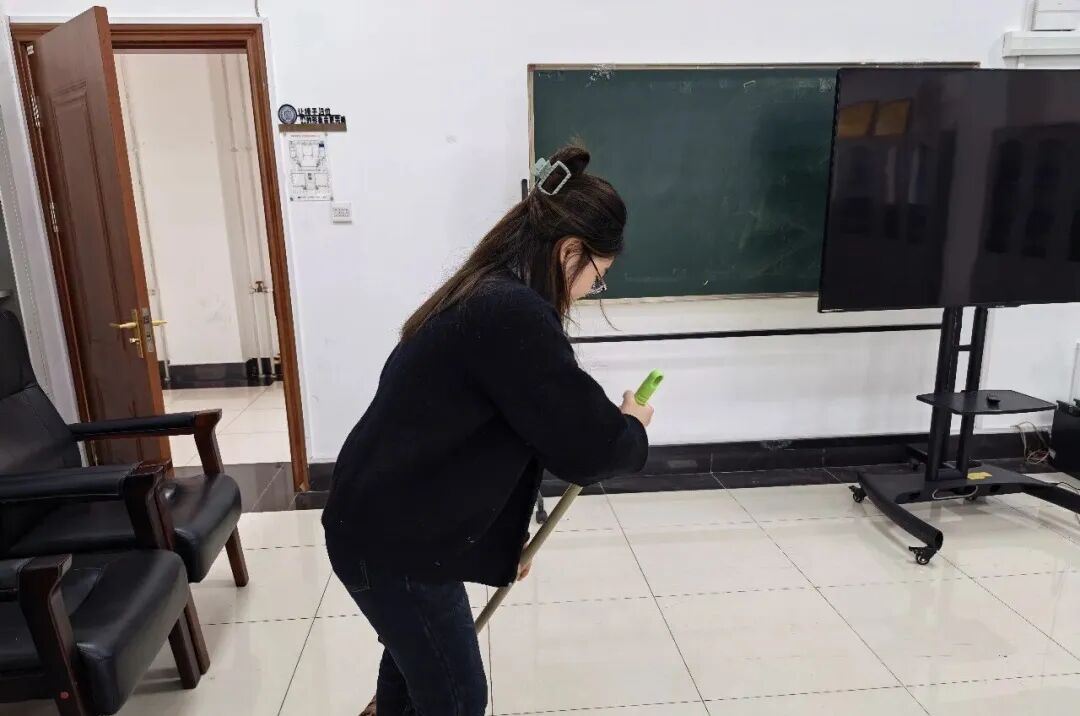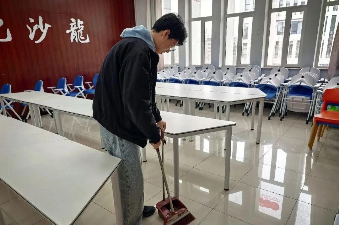 劳动现场,学员们分工明确、协作默契,全身心投入到教室环境整理工作中。大家秉持细致认真的态度,对教室进行全方位、无死角清扫:手持清扫工具,仔细清理地面灰尘、纸屑及各类杂物,不放过任何卫生死角;拿起抹布认真擦拭书架,逐层清除灰尘,将书籍逐一整理、规范摆放,让书架焕然一新;同时对桌面、角落的零散物品进行归置整理,优化空间布局。尽管劳动过程略为辛苦,但学员们始终热情饱满、毫无怨言,充分发扬了吃苦耐劳、团结协作的精神。经过大家的共同努力,教室内环境变得干净整洁、井然有序,学习氛围也更加舒适宜人,为自身和同学们营造了优质的学习环境。